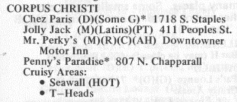 First, Bob Damron’s Address Book primarily reflected commercial gay male culture, with less coverage of other queer spaces. Spaces for lesbians or other groups may be underrepresented.